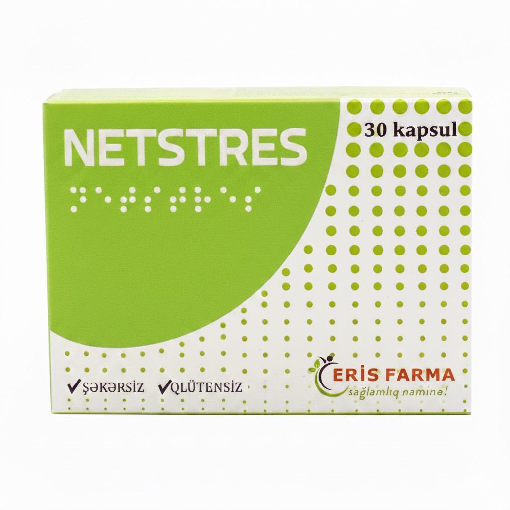 Məhsul haqqında məlumat: L-Triptofan, dərman pişikotu kökünün ekstraktı, inkarnat qonaqotu çiçəyinin ekstraktı, dərman limonotu yarpaqlarının ekstraktı, maqnezium sitrat və B6 tərkibli BFMQƏ istifadə sahəsi və əsas göstərişlər: NETSTRES - MSS-nin (mərkəzi sinir sisteminin) fəaliyyətini yaxşılaşdırmaq məqsədilə tövsiyə olunan BFMQƏ